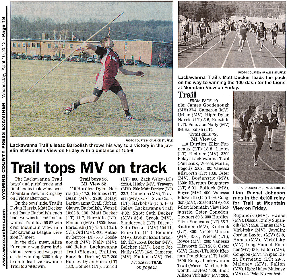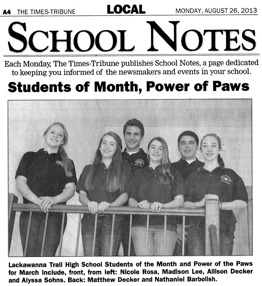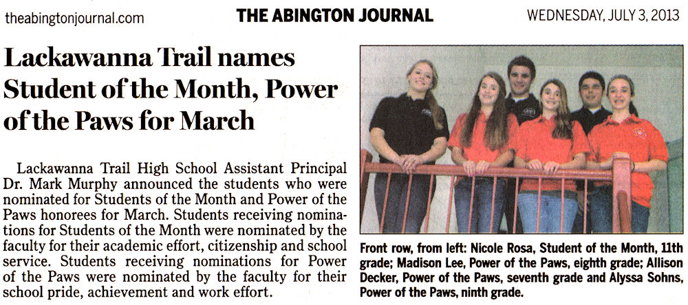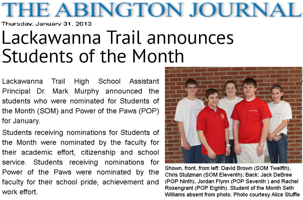 LTSD Lackawanna Trail Super Domain Information School District High School News Archive 2013 SD JR/SR published articles research LTHS LTEC LT website index Factoryville Nicholson Dalton Fleetville not official LTSD.ORG
