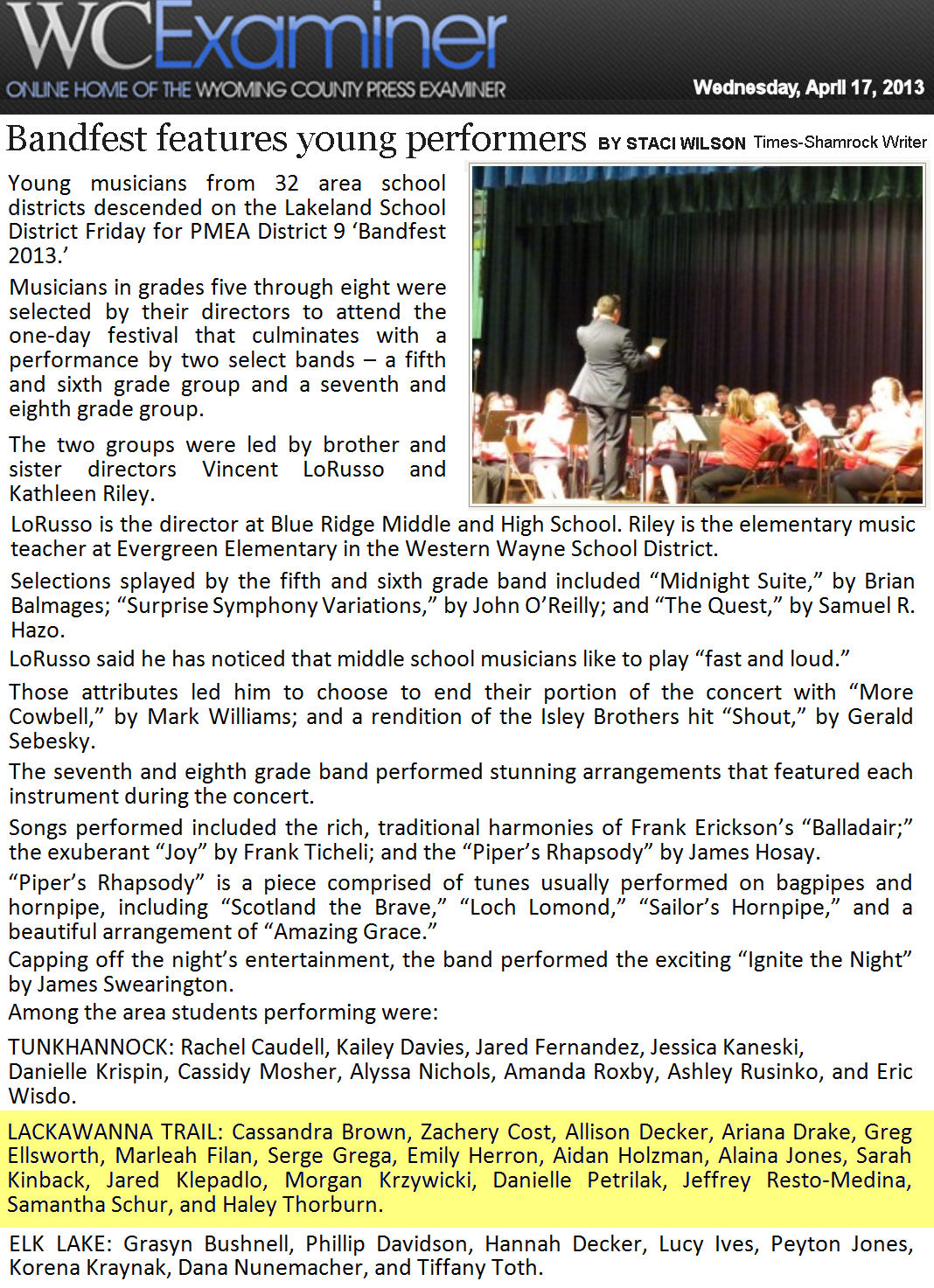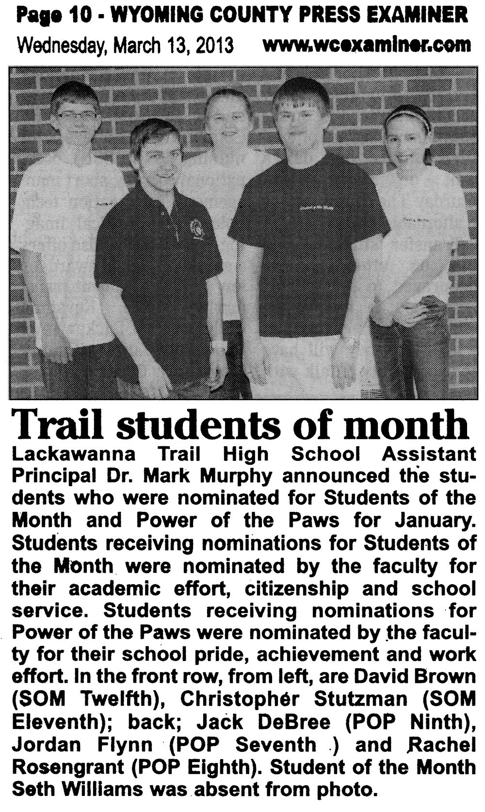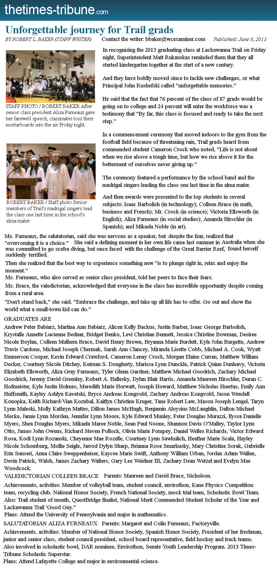LTSD Lackawanna Trail Super Domain Information School District High School News Archive 2013 SD JR/SR published articles research LTHS LTEC LT website index Factoryville Nicholson Dalton Fleetville not official LTSD.ORG